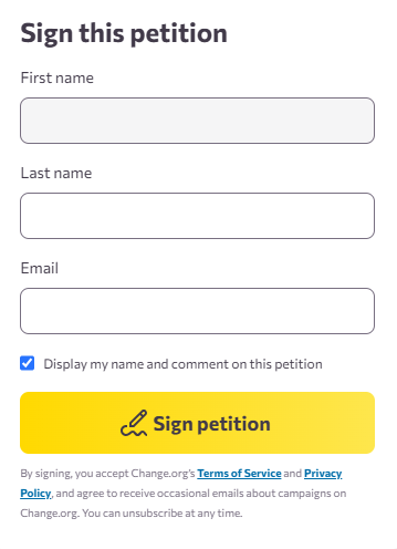 To sign the petition, you only need to be a UK citizen and provide minimal details to sign the petition as shown below: